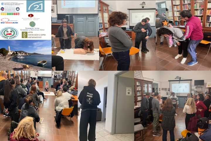 Πραγματοποιήθηκαν δράσεις όπως εκπαίδευση σε πρώτες βοήθειες και διαχείριση επειγόντων περιστατικών στο πεδίο, με τη χρήση αυτόματου εξωτερικού απινιδωτή σε κατοίκους του νησιού και σε εκπροσώπους της Αστυνομίας, του Λιμενικού, του Στρατού