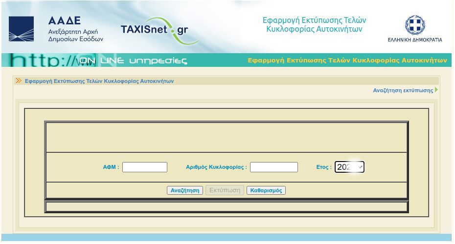 Πως θα εκτυπώσουμε τα τέλη κυκλοφορίας χωρίς κωδικούς TAXISnet